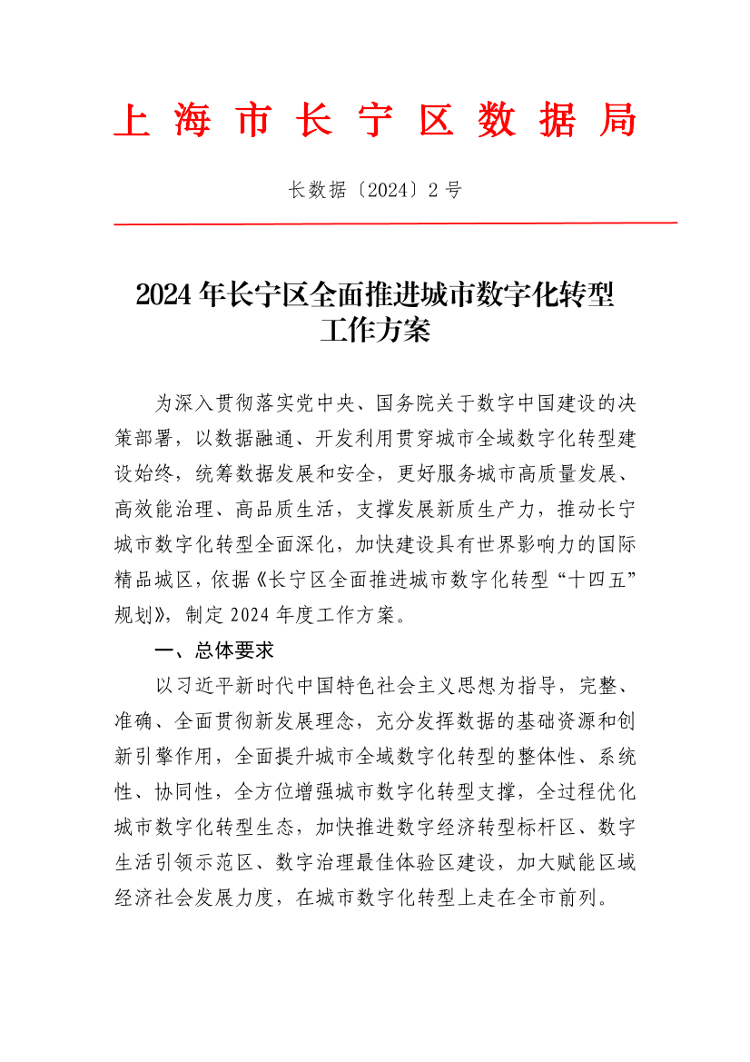 2024年長(zhǎng)寧區(qū)全面推進(jìn)城市數(shù)字化轉(zhuǎn)型工作方案