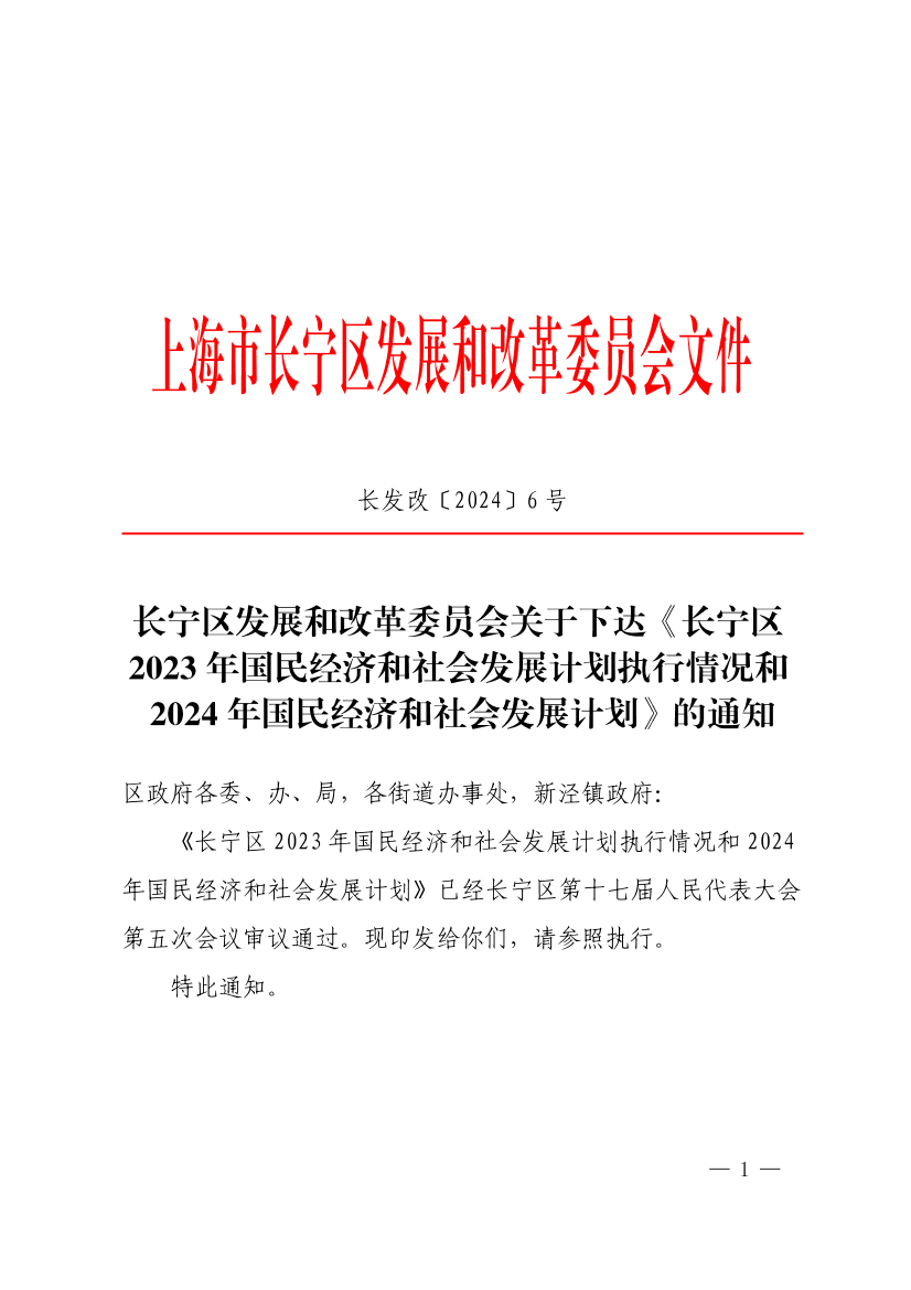 長寧區(qū)發(fā)展和改革委員會(huì)關(guān)于下達(dá)《長寧區(qū)2023年國民經(jīng)濟(jì)和社會(huì)發(fā)展計(jì)劃執(zhí)行情況和2024年國民經(jīng)濟(jì)和社會(huì)發(fā)展計(jì)劃》的通知