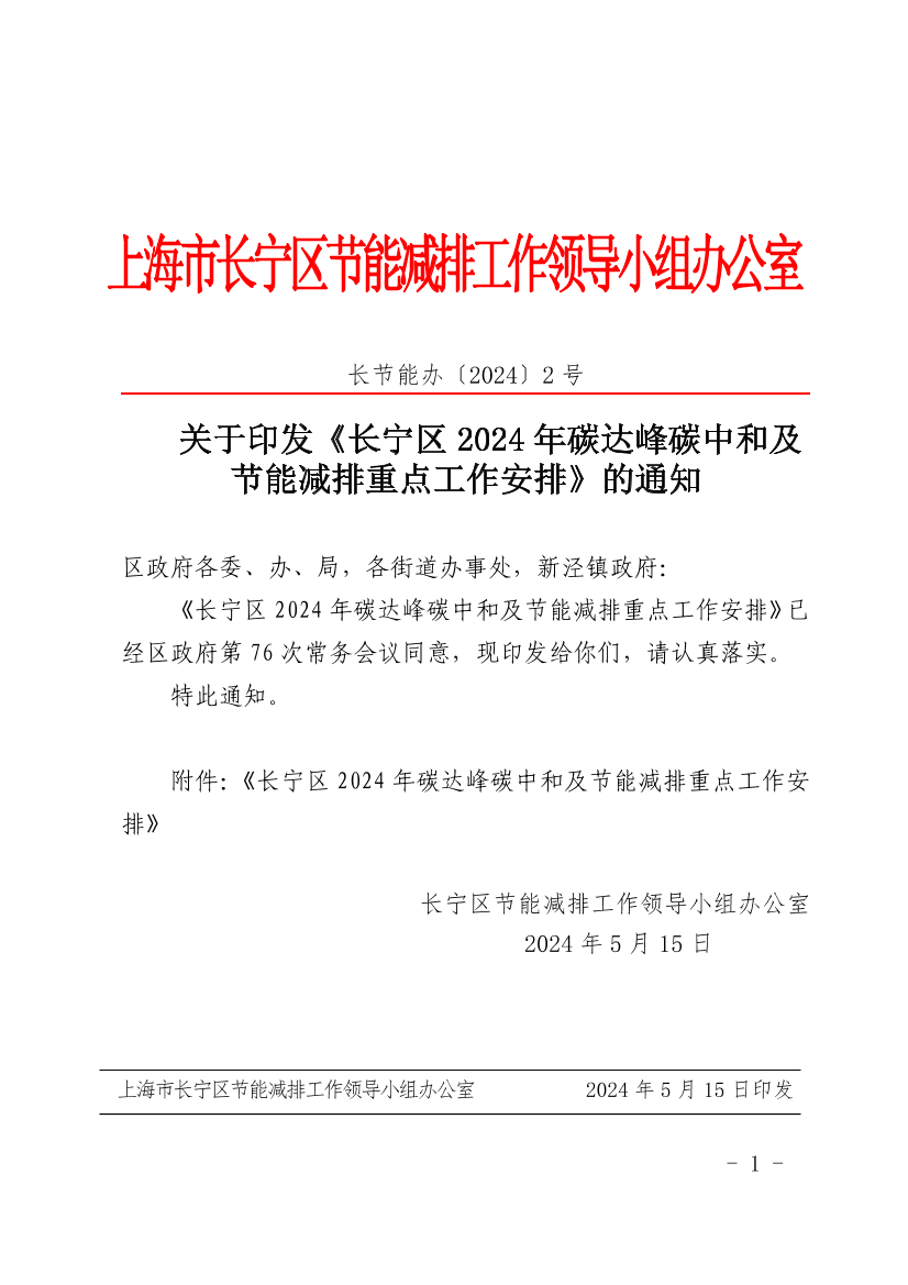 關于印發(fā)《長寧區(qū)2024年碳達峰碳中和節(jié)能減排重點工作安排》的通知