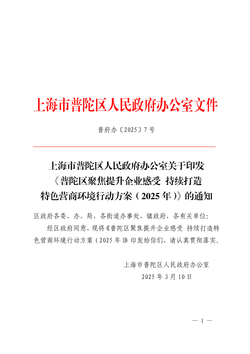 ??經區(qū)政府同意,現(xiàn)將《普陀區(qū)聚焦提升企業(yè)感受持續(xù)打造特色營商環(huán)境行動方案(2025年)》印發(fā)給你們,請認真貫徹落實。