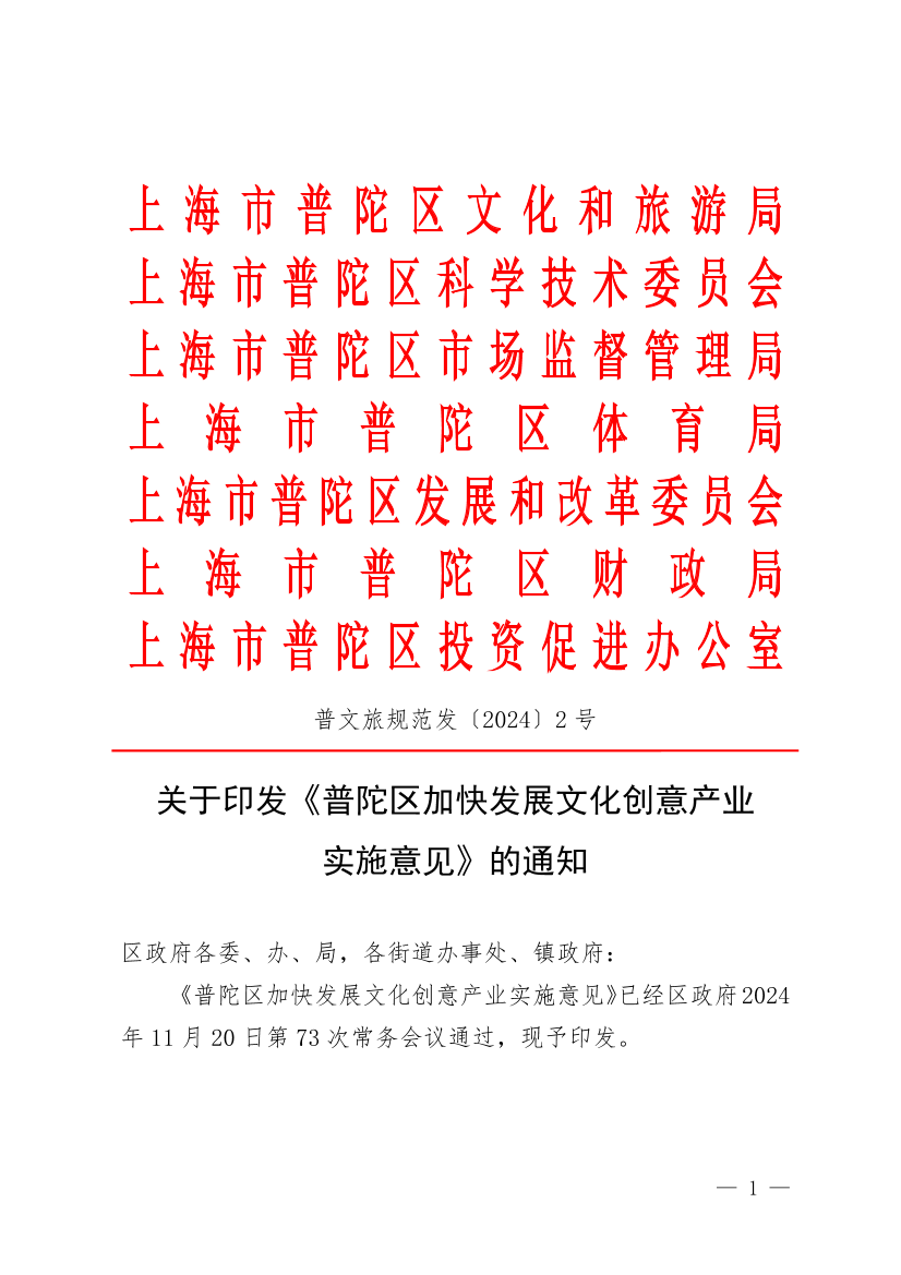 ??《普陀區(qū)加快發(fā)展文化創(chuàng)意產(chǎn)業(yè)實施意見》已經(jīng)區(qū)政府2024年11月20日第73次常務(wù)會議通過,現(xiàn)予印發(fā)。