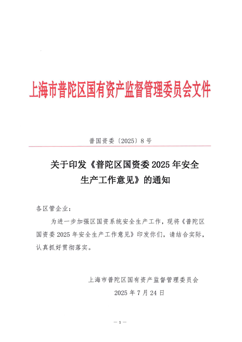 ??為進一步加強區(qū)國資系統安全生產工作,現將《普陀區(qū)國資委2025年安全生產工作意見》印發(fā)你們,請結合實際,認真抓好貫徹落實。