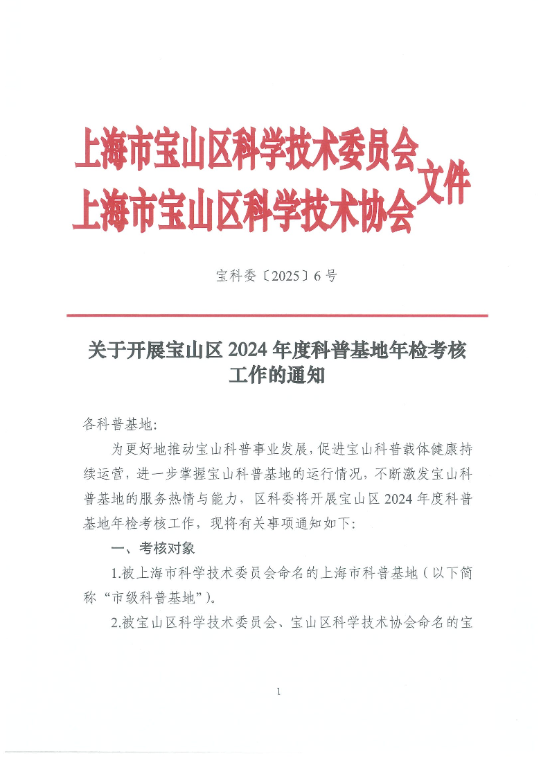 ??2.被寶山區(qū)科學(xué)技術(shù)委員會(huì)、寶山區(qū)科學(xué)技術(shù)協(xié)會(huì)命名的寶山區(qū)科普基地(以下簡(jiǎn)稱“區(qū)級(jí)科普基地”)。
