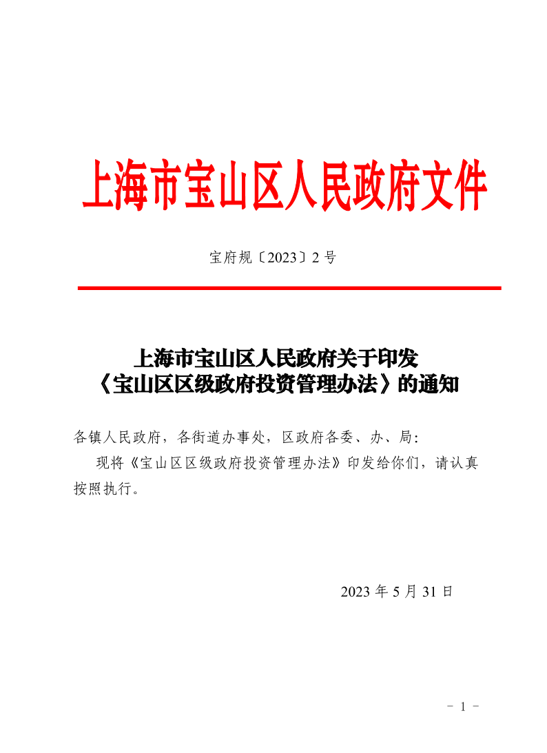 上海市寶山區(qū)人民政府關(guān)于印發(fā)《寶山區(qū)區(qū)級政府投資管理辦法》的通知