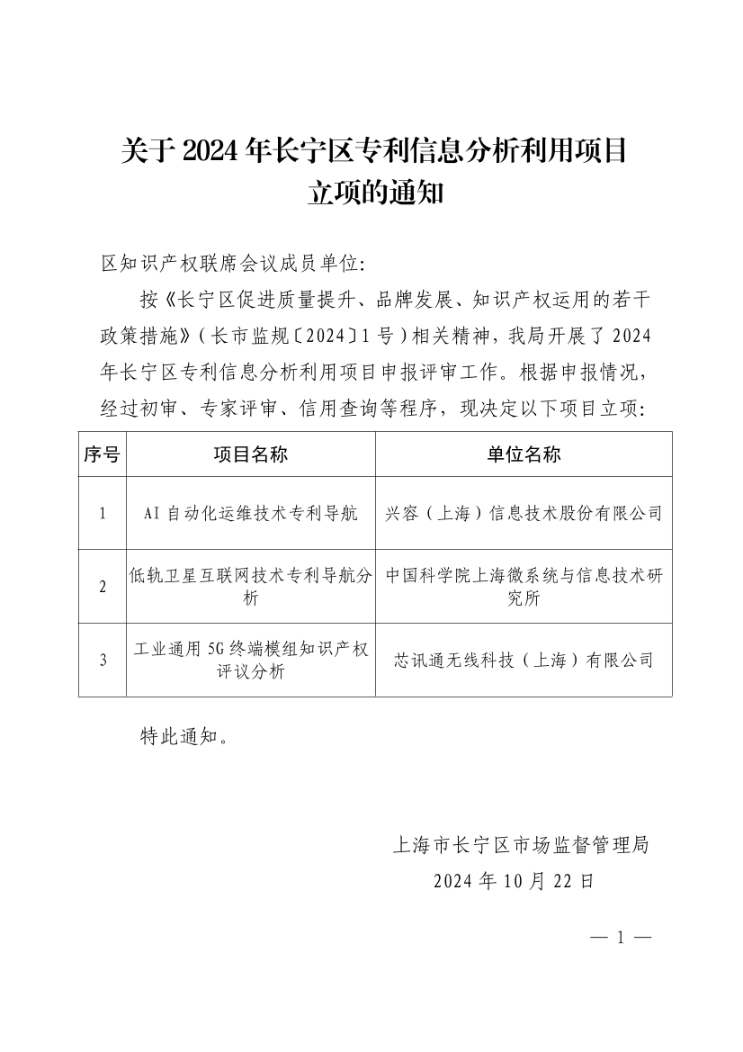 關(guān)于2024年長寧區(qū)專利信息分析利用項(xiàng)目立項(xiàng)的通知