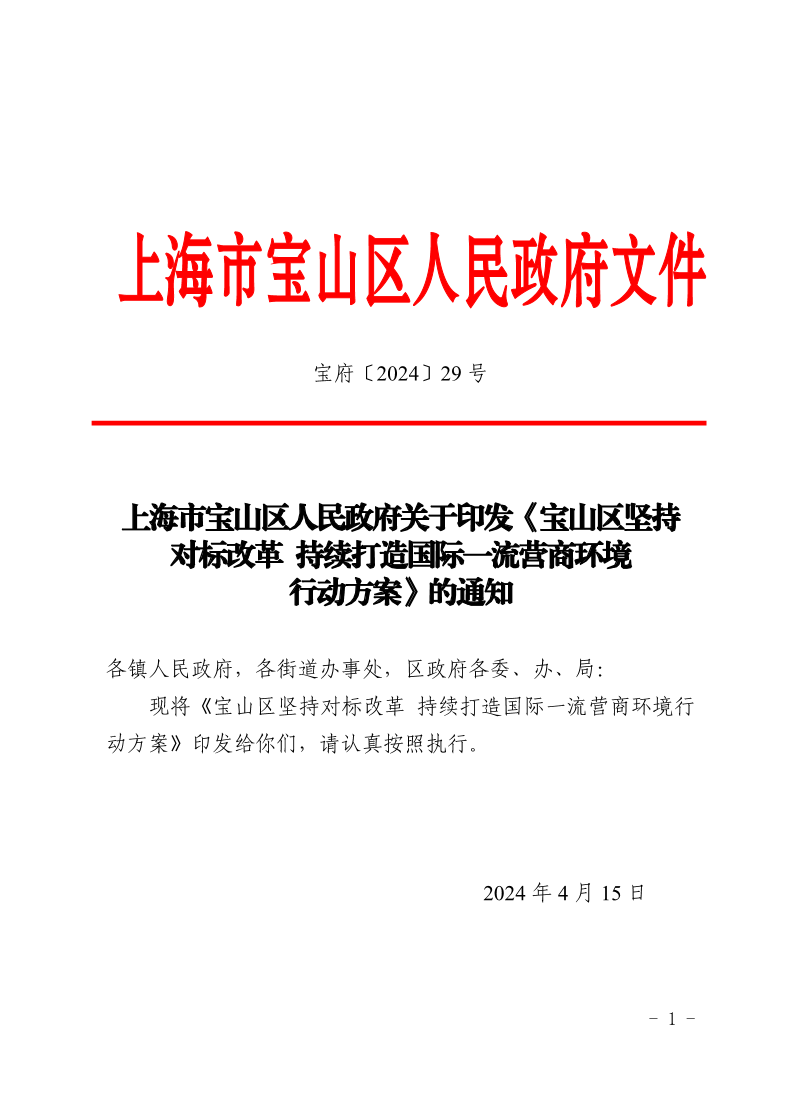上海市寶山區(qū)人民政府關(guān)于印發(fā)《寶山區(qū)堅持對標(biāo)改革 持續(xù)打造國際一流營商環(huán)境行動方案》的通知