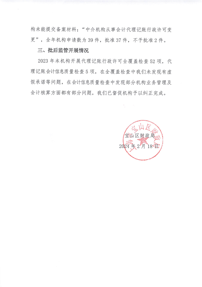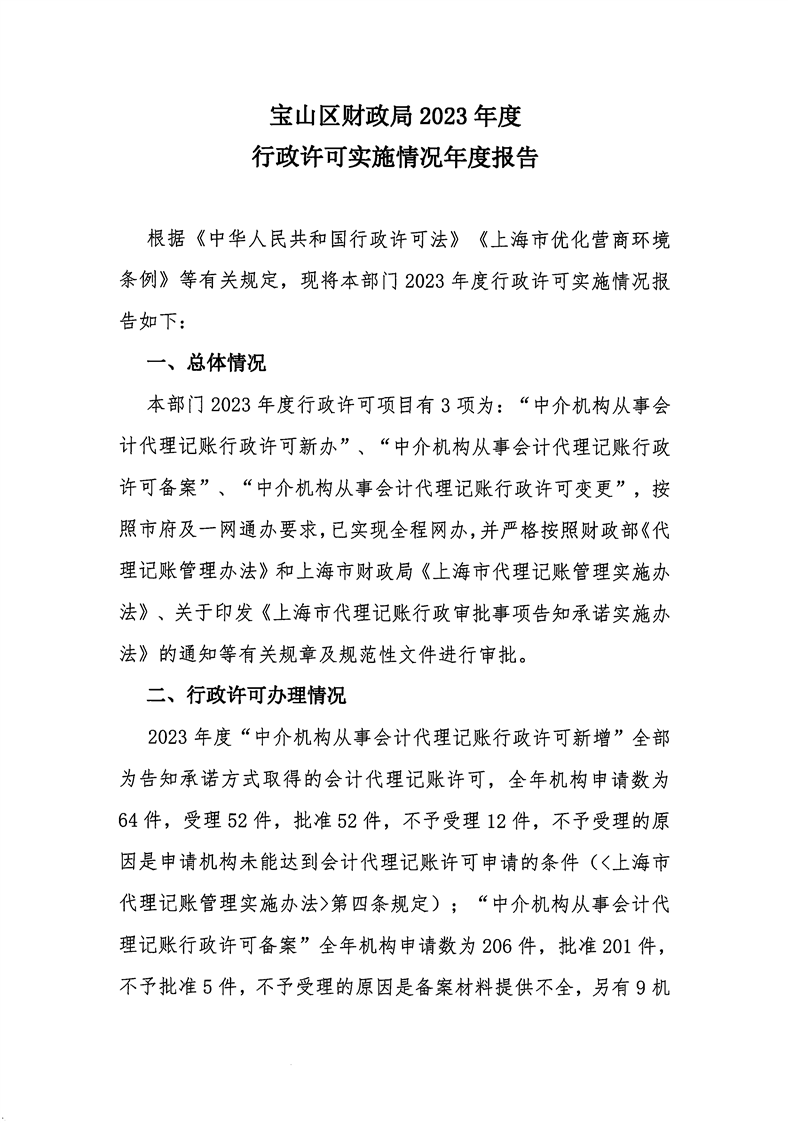 寶山區(qū)財政局2023年度行政許可實施情況年度報告